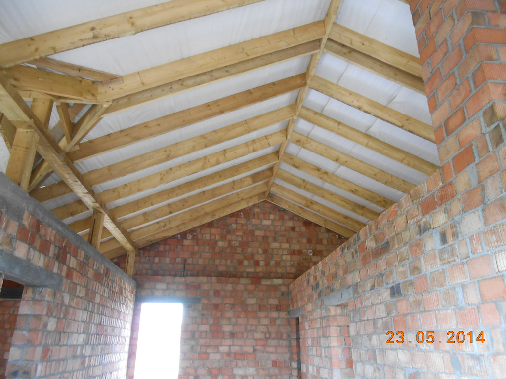 Здесь мы построили первый этаж и мансардный этаж с крышей.